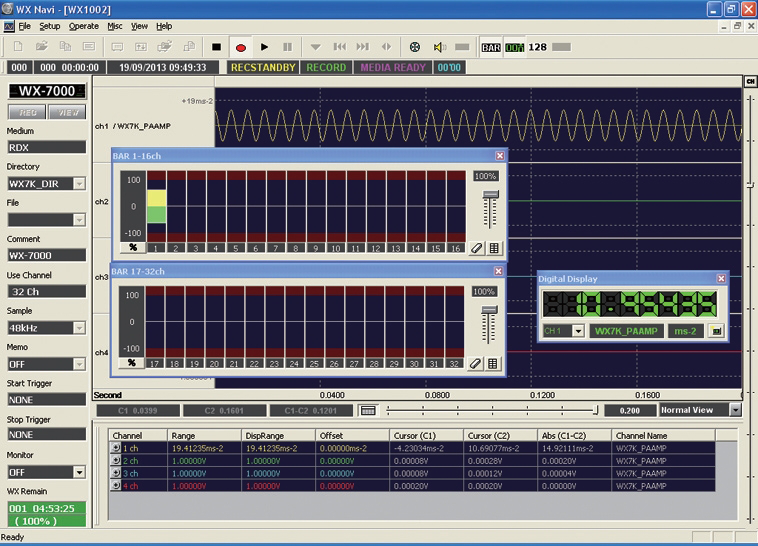 | Recording of time information / Playback of time information | It is possible to record the data (time record that provided by GPS orIRIG-B126,IRIG-B120-B123) to the measurement channel in the orginal format.An applicable channel(CH1) is overwritten by the original format data. The signal is then output during playback. |
