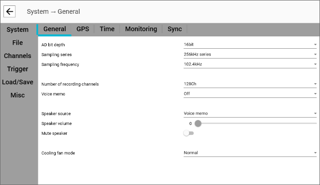 - Set the measurement conditions(Basic settings, GPS, time, trigger, monitor output, synchronization)